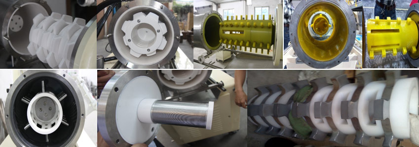 出料面積大,是盤式和渦輪式機器的2-4倍,物料通過性好,不易堵塞機器,在生產有膨脹性物料時優點突出。冷卻換熱效果好。桶體,轉子,出料器三位冷卻,冷卻面積是盤式及渦輪式設備的1.3-1.5倍,有效控制物料的升溫問題。